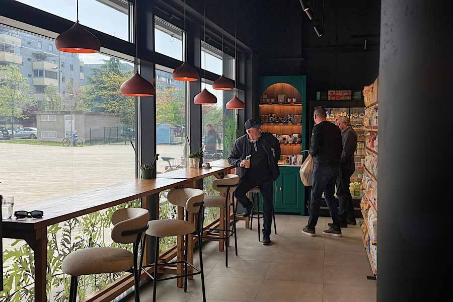 Prvo, Mrkvica je sada i specialty coffee kafić, koji uz kavu nudi niz slastica. Drugo, Mrkvica na Vrbanima ima niz specijaliziranih polica, poput police s bezglutenskim proizvodima, police sa zanatskim medovima, vitrine s vrhunskim jogurtima, kefirima i mladim sirevima s naglaskom na proizvode kultne ličke mljekare Vedrine, pa vitrinu s domaćom smrznutom ribom, koja izgleda dobro koliko smrznuta riba može izgledati.