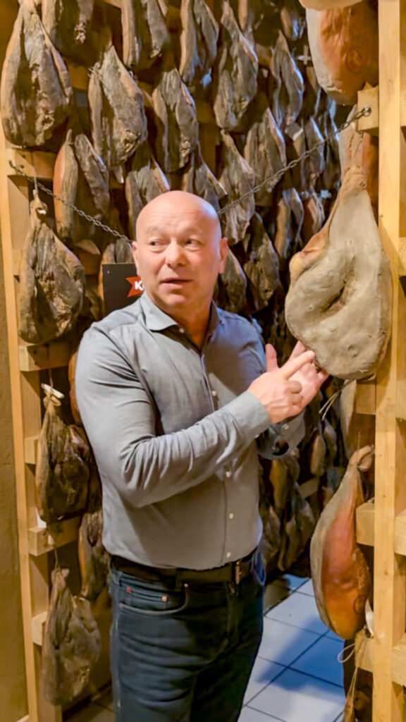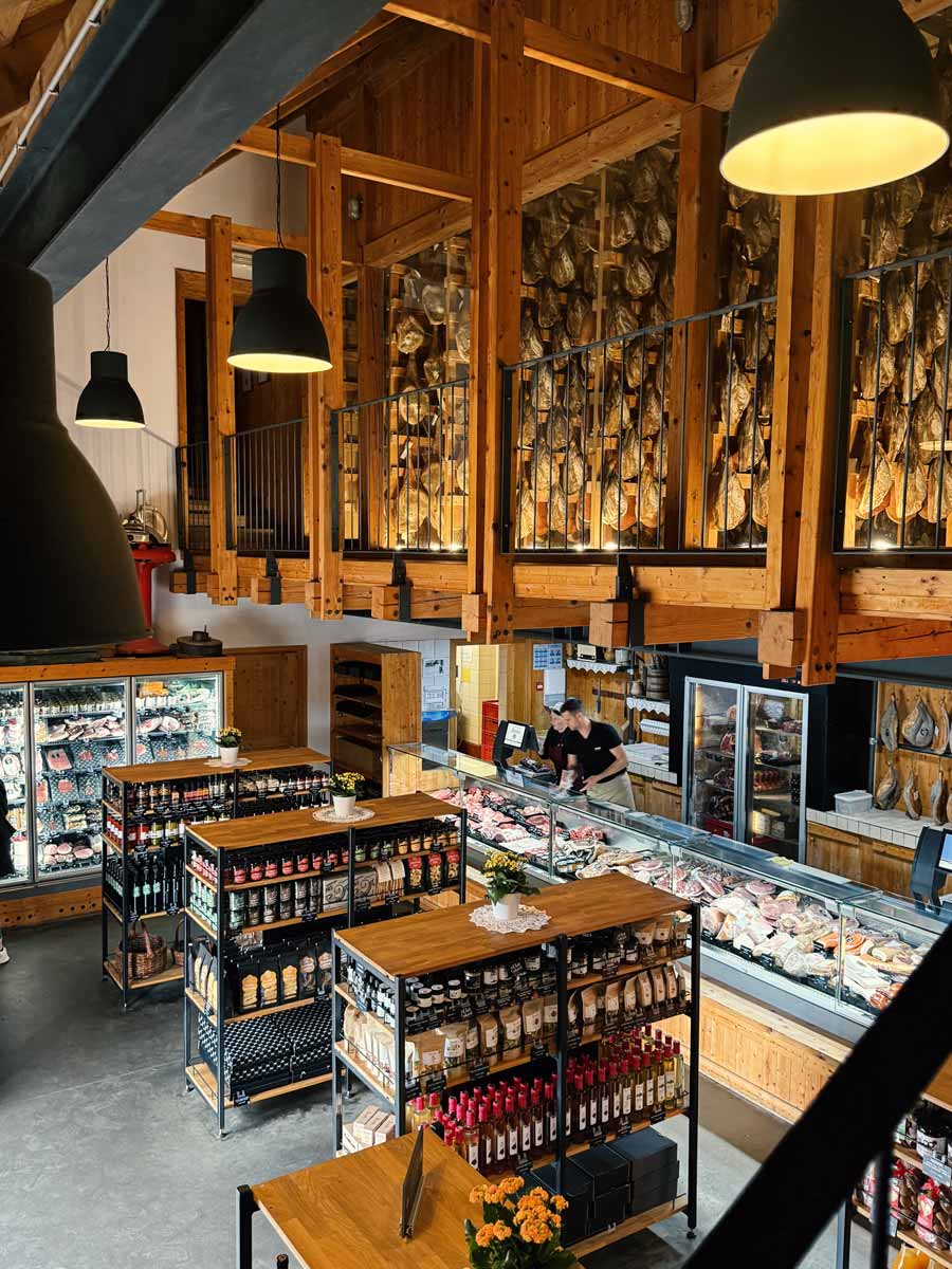Svi su proizvodi maksimalno prirodni, bez aditiva, osim malog udjela nitrata u nekim salamama i kobasicama. Meso se suši na prirodnom dimu bukova drveta. Dvorana s pršutima zgleda impresivno: neki su pršuti bitno dulji od metra. Najstariji pršuti odležavaju 36 mjeseci.